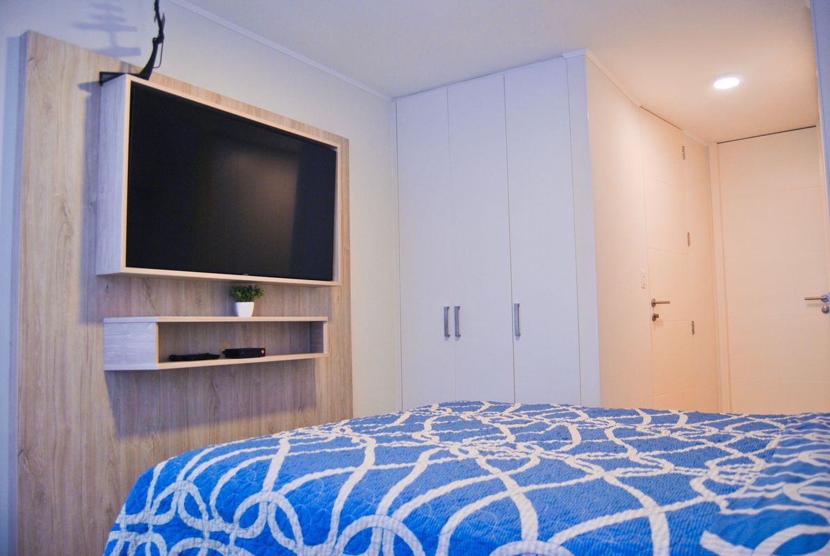 La habitación principal cuenta con una cama Queen y dos veladores de noche, una lámpara, closets y smart TV. Su baño privado cuenta con ducha caliente, secadora de cabello, shampoo, jabón de cuerpo y de mano.