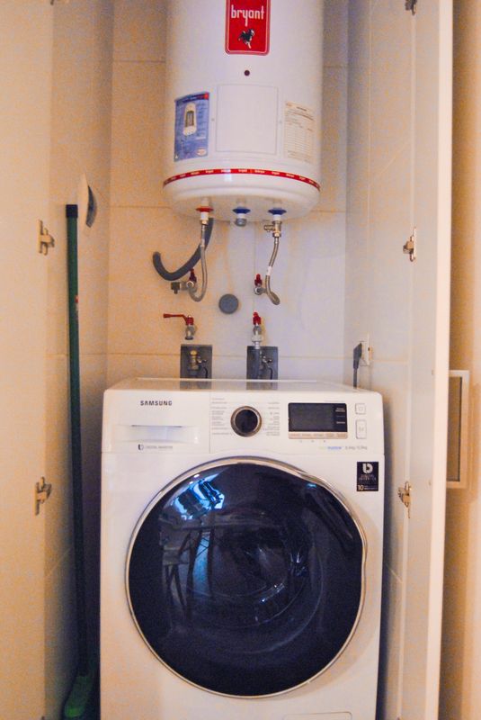 Hay un compartimento privado para la lavaseca, plancha y tabla de planchar.